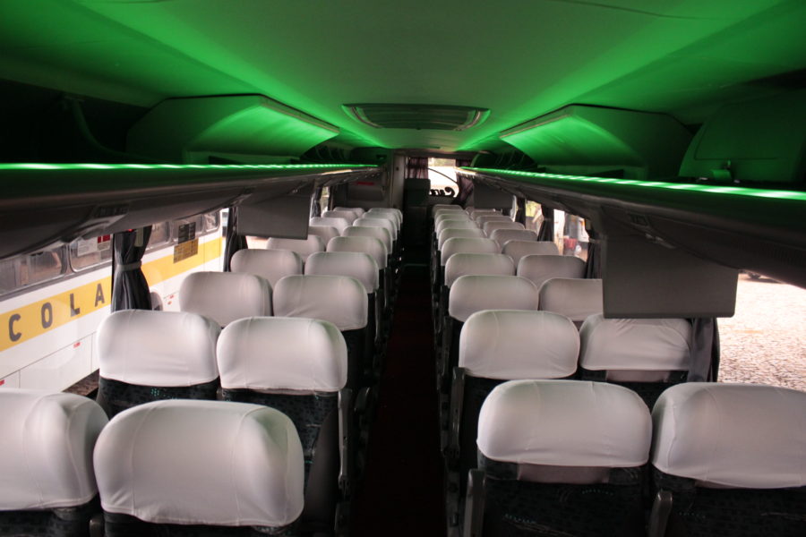 Carro Nº 2020, Leito Turismo, Paradiso, Totalmente Digital (trazendo mais conforto ao passageiro), Engabinado, com Frigobar, capacidade 46 Lugares, Poltronas Super Soft acompanhada de Espuma Especial, com Entrada USB/Carregador Individual nas poltronas, Descansa Pés, Porta Copo, Geladeira Elétrica, 04 TVs Digitais com DVD e Som, Banheiro Ecológico com espaço diferenciado, Ar Condicionado Digital, Luz com Cromoterapia, Wi-fi, Sistema Anti-tombamento com freio ABS e suspensão inteligente.